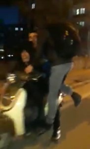 Trafikteki tehlikeli yolculuk sırasında, kendilerinin cep telefonu kameralarıyla görüntülendiği fark eden vurdumduymaz gençler kameralara el sallamayı da ihmal etmedi.