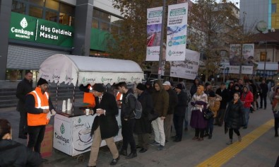 Hacettepe Üniversitesi Beytepe Kampüsü önünde sabahın erken saatlerinde işine ve okuluna giden vatandaşlara 06.00-09.00 saatleri arasında sıcak çorba ikram ediyor. 5 yıldır sıcak çorba dağıtımını sürdüren