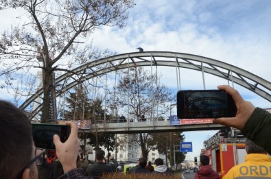 Ordu’nun Fatsa ilçesinde bir vatandaş, üst geçidin demirlerine çıkarak intihar girişiminde bulundu. Çevredeki vatandaşlar, cep telefonları ile bu anları kaydetti.