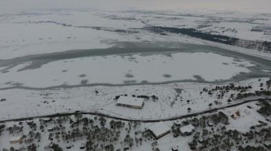 Sıcaklıkların düştüğü dile getiren Efe Emirhan Doğan ise, “Geçen sene hiç kar yağmadı. Bu sene böyle olması güzel oldu. Göl de donunca güzel bir manzara oldu” ifadelerini kullandı.