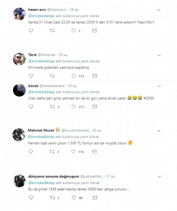 Yayın evinin Twitter'dan paylaşım yapmasının ardından birçok kullanıcı gönderinin altına yorumda bulundu.