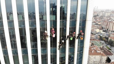 (Özel) 130 Metre Yükseklikte Temizlik İşçilerinin Ekmek Mücadelesi Havadan Görüntülendi