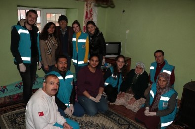 Gönüllü öğrenciler, yaşlı ailelerle sohbete de zaman ayırarak manevi yönden onlara destek olmaya çalıştı.