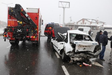 Kar Nedeniyle Kırmızı Işığı Görmeyen Sürücü Önündeki Araca Çarptı Açıklaması 2 Yaralı