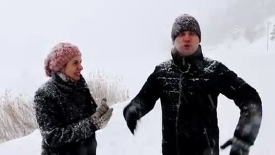 Kar yağışının aralıklarla devam ettiği Abant'ta, kar kalınlığı yarım metreyi geçti.