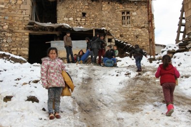 BİTLİS – Bitlis’in Hizan ilçesindeki çocuklar, karda kayarak günlerini geçiriyor.