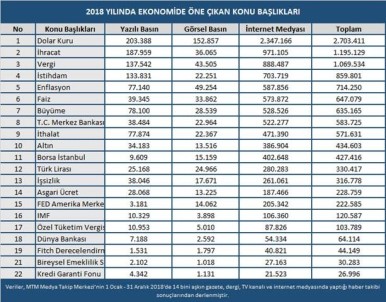 Medya Takip Merkezi (MTM), Ekonomi Gazetecileri Derneği için yaptığı araştırmada 2018 yılının öne çıkan ekonomi başlıklarını açıkladı.