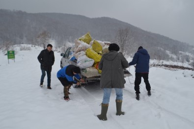 İnegöl Orman İşletme Müdürlüğü ve belediye tarafından tahsis edilen araçla İnegöl’den kilometrelerce uzaklıkta bulunan ormanlara yiyecek bırakıyor.