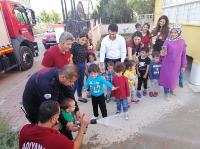 Adıyaman Belediyesi İtfaiye Müdürlüğü ekipleri anaokulu öğrencilerini deprem ve yangın konusunda bilgilendirdi.