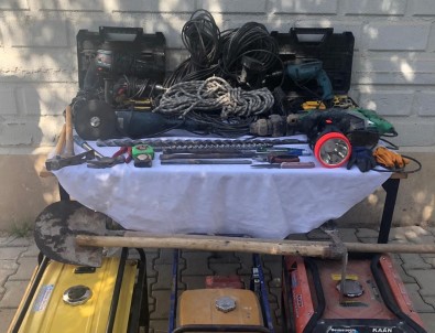 jandarma tarafından gözaltına alınırken, olay yerinde 5 araba, 3’er adet sıkıştırılmış şeker karışımı patlayıcı, 1 demir kesme makinesi, 3 jeneratör, 1’er adet kürek, kazma, balta, av tüfeği, 2 tabanca, 1’er adet projektör lamba, şarjlı matkap, 1’i küçük 2 matkap, 1 hilti, 3 el feneri, 2 keser, 1 çekiç, 2 murç, muhtelif uzunluklarda kablo, 15 adet muhtelif kazı malzemesi ele geçirildi.