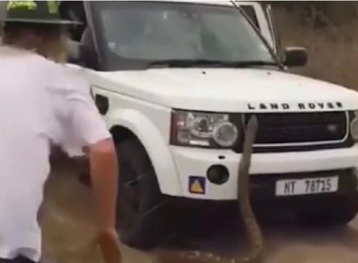 Durban kentinde gezintiye çıkan turistler, yaklaşık 5 metre uzunluğundaki pitonun saldırısından son anda kurtuldu. Turistler kumlu arazide gezinti yaptıkları sırada bir teknenin altında uyuyan pitonu gördü. Turistlerden biri pitonun fotoğrafını çekerken, diğeri de pitonun kuyruğuna dokundu. Turistin kuyruğunu çekmesinin ardından harekete geçen dev piton, turistlerin aracının üstüne çıktı. Pitonun cipin üzerine çıkmasının ardından, turistler panikle araçlarına binerek o bölgeden uzaklaştı.