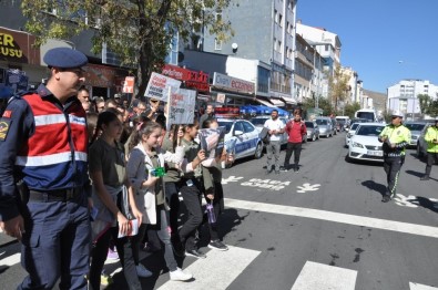 Etkinlikte Vali Türker Öksüz ve beraberindekiler daha sonra trafik ve Jandarma ekipleri ile birlikte araç sürücülerine trafikte yaya önceliği içerikli broşürler dağıttılar.