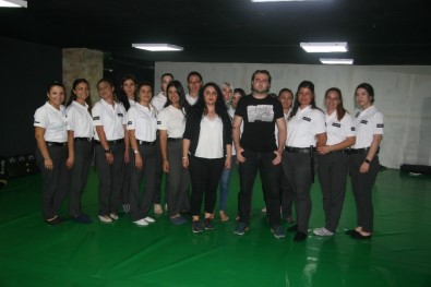 Eğitimde renkli görüntüler ortaya çıkarken, kadın güvenlik görevlileri kendilerini şiddete karşı nasıl koruyacaklarını öğrendi.