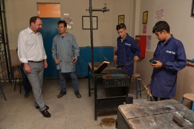 Atölyeleri gezen ve öğrencilerle sohbet eden Başkan Gümrükçü, belediyenin ihtiyaç duyacağı; mobilya, bank ve çöp konteynerlerini okulun üretmesini ve tamir etmesini önerdi. Gümrükçü, "Bazı ürünleri geri dönüşüm malzemeleri kullanarak üretelim. Bu üretim sayesinde hem öğrencilerimize maddi destek sağlayalım hem de dönüşüm ekonomisine katkı sağlayarak çevreyi koruyalım" dedi.
