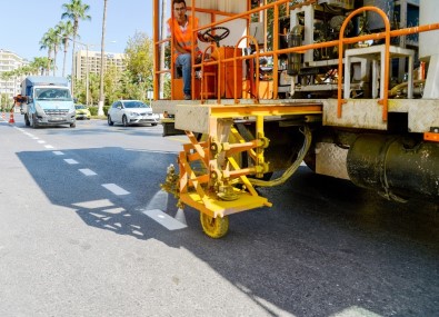 İçel Büyükşehir Belediyesi Yol Yapım Bakım ve Onarım Dairesi Başkanlığı ekipleri, halkın trafik güvenliğinin sağlanması amacı ile kentin cadde ve sokaklarında yol çizgisi çalışmalarına devam ediyor. Çalışmalar kapsamında çevre dostu ve kalıcı özellik gösteren termoplastik ürünler tercih ediliyor.