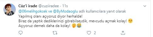 Gökçek'e çok sayıda takipçisinden destek geldi. Gökçek bu tweetlerin bazılarını 'Süper kapak' notuyla paylaştı.