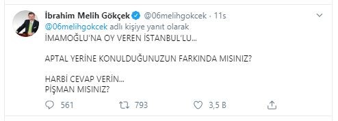 İmamoğlu'na oy verenlere sitem eden Gökçek ayrıca şu soruyu sordu: İmamoğlu'na oy veren İstanbullu, aptal yerine konulduğunuz farkında mısınız? harbi cevap verin, pişman mısınız?