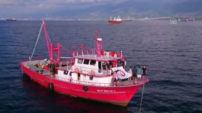 Burada, gemiye Türk bayrağı asan öğrenciler, güvertede asker selamı vererek 29 Ekim Cumhuriyet Bayramı'nı kutladı.