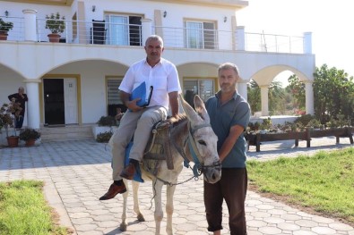 Kuzey Kıbrıs Türk Cumhuriyeti’nde (KKTC) makam aracına el koyulan Dipkarpaz Belediye Başkanı Suphi Coşkun, dün sabah evinden belediye binasına eşek ile gitti.