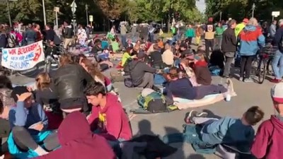 Başkent Berlin'de bazı caddeleri araç trafiğine kapatan göstericiler, hükümetten iklim konusunda daha ciddi adımlar atmasını talep ediyor.