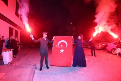 Piyade Teğmen Yusuf Uyanık, Şeyma Güven Ateş ile evliliğe ilk adımlarını Tokat’ta attı. Genç teğmen nişanlısını salon girişinde üniforma ile karşıladı. Ardından üniformasının içinden çıkardığı Türk bayrağını öperek hediye etti. Genç kadın da Türk bayrağını öperek aldı. Salona Türk bayrağı açarak alkışlar arasında giren çift mesaj verdi. Barış Pınarı operasyonuna katılan birçok arkadaşı olduğuna dikkat çeken Teğmen Uyanık, “Silah arkadaşlarımı bu bölgedeler şehitlerimiz gazilerimiz oluyor. Buradan da bir mesaj göndermek açısından, bayrak sevgisini gençlerimize aşılamak için böyle bir şey düşündüm” dedi.