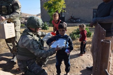 Emniyet Müdürlüğü personel ve ailelerinin düzenlediği kampanyada toplanan kıyafet ve oyuncaklar paketlenerek, Tall Adwaniyah, Tall Harap Sayar ve Ebuculud Kuyusu kırsalında çocuklara dağıtıldı. Suriyeli çocuklar hediyeleri sevinçle karşılarken,
