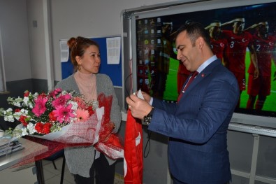 Müdür Büyükatak daha sonra Okul Müdürü Ahmet Osmanca ve okulda görevli diğer öğretmenlerin de öğretmenler gününü kutladı.