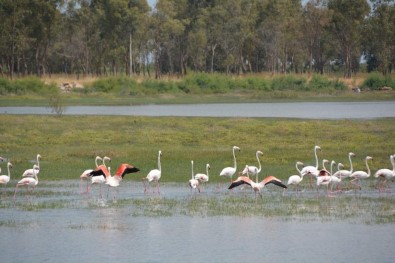 İzmir’in Aliağa ilçesinde bulunan ve Türkiye’deki 425 kuş türünden 103’üne ev sahipliği yapan Aliağa Kuş Cennetinde flamingolar rengarenk görüntüler oluşturuyor.