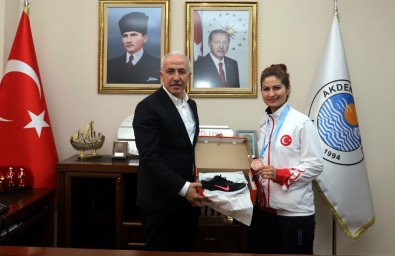 Elde ettiği başarıdan dolayı Akkaya’yı tebrik eden Başkan Gültak, şampiyon tekvandocuya bir spor ayakkabısı hediye etti. Akdeniz Belediyesi olarak spora ve sporcuya her zaman destek olacaklarını ve katkı sunacaklarını vurgulayan Gültak, Akkaya’ya bundan sonra katılacağı şampiyonalarda başarılar diledi.
