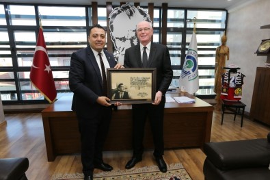 Başkan Kurt’a Türk Bayrağı ve Memur Sen Kurucu Genel Başkanı Mehmet Akif İnan’ın tablosunu hediye eden Köksal ve Yönetim Kurulu Üyeleri, Başkan Kurt’u Odunpazarı’nda gerçekleştirdiği başarılı çalışmalar nedeniyle tebrik etti.