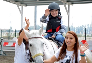 Engelliler ve Sağlık Hizmetleri Dairesi Başkanlığı tarafından düzenlenen etkinlikte, ’Atla Terapi Merkezi’nde, özel eğitim almış psikolog ve fizyoterapistlerden oluşan profesyonel bir ekip tarafından atlarla bir araya getirilen çocuklar, gönüllerince eğlenirken aileleri de çocuklarının mutluluğuna ortak oldu.