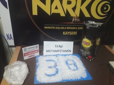 Yolcu otobüsünü Kayseri girişinde durduran polis ekipleri, 27 yaşındaki N.M. isimli İran uyruklu kadının bagajında arama yaptı. Yapılan aramalarda çay paketinin içine gizlenmiş vaziyette 513 gram metamfetamin maddesi ele geçirildi.