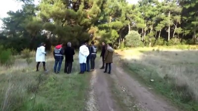 Şüphelilerin gösterdiği ve kafatasının da bulunduğu ormanlık alanda kokuya duyarlı köpekle çalışma yapıldı.
