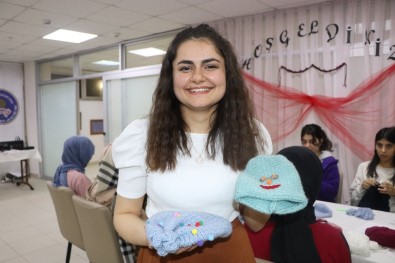 Samsun Kredi Yurtlar Kurumunda (KYK) kalan üniversite öğrencileri kırsal mahallerde bulunan ihtiyaç sahibi çocuklar için atkı, bere ve eldiven üretiyor.
