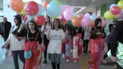 Palyaço ve hayvan kostümleri giyen öğrenciler, çocuklara balon ve çeşitli hediyeler verdi.