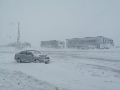 Kayseri'de Tipi Nedeniyle Otomobil Ve Tırlar Yolda Mahsur Kaldı