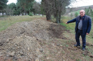 Tekirdağ’ın Malkara ilçesinde define avcılarının define bulma umuduyla mezarlıkta kazı yaptığı iddia edildi. Açılan çukuru gören mahalle muhtarı definecilere tepki gösterdi.