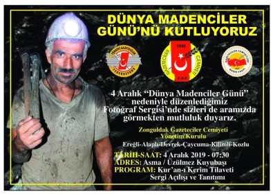 4 Aralık Dünya Gazeteciler Günü nedeni ile Zonguldak Gazeteciler Cemiyeti ( ZGC) madencilerin geçmiş zaman yeraltı ve yerüstü çalışma hayatları yansıtan fotoğraf sergisi açıyor.
