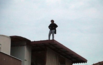 Hakkında Arama Kararı Bulunan Kadın, Polisi Görünce Çatıya Çıktı