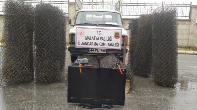 Malatya’da, 10 top kafes tel örgü, evin içerisinde bulunan 1 adet kamera kayıt cihazı ve 1 adet televizyon çalan 2 zanlı yakalandı.