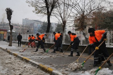 Cumhuriyet, Maraş, Milli Egemenlik, Defterdarlık, Hacıbekir, Hastane, İkinisan, Sıhke ve Zübeyde Hanım caddelerinde yürütülen çalışma ile kaldırım ve yaya yolları kardan temizlendi.