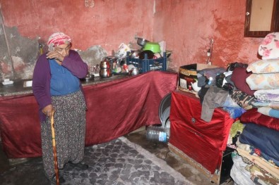 Kayseri’de, harabe ve çatısı akan evde oturan 60 yaşındaki Hanım Durmuş, aldığı yaşlılık maaşı ile bir oğlu ve torunuyla yaşam mücadelesi veriyor.