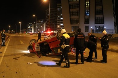 Erhan Üstündağ Caddesinde meydana geldi. Kazada M.Ç (55) yönetimindeki otomobil yoldan çıkarak önce refüjdeki trafik levhasına çarptı. Ardından yolda takla attı. M.Ç. tekerlekleri havada kalan araçtan hafif yaralı olarak çıkmayı başardı. M.Ç.’nin alkolü olduğu tespit edildi. Hafif yaralının sürücünün ilk tedavisi olay yerine gelen ambulansta yapıldı. Ardından aynı ambulansla