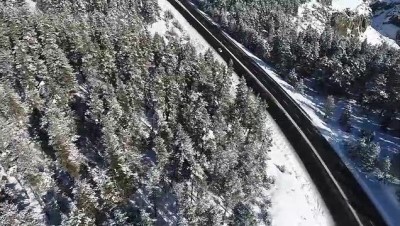 Sarıçam ormanlarıyla çevrili ilçede karla kaplı sarıçam ağaçları, Katerina Köşkü ve yörenin drone ile havadan çekilen görüntüleri görsel şölen sundu.