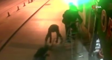 Bu sırada kaçarken güvenlik kameraları levye ile kırmaya kalkışan soyguncular, yanlarında getirdikleri seyyar merdiveni döviz bürosu önünde bıraktı.