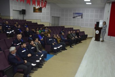 Necip Fazıl Kısakürek Kültür Merkezi’nde gerçekleştirilen eğitimde belediye personeline Kartepe Belediyesinde Çevre Mühendisi ve İş Güvenliği Uzmanı Gizem Duygu Coşan tarafından verilen eğitimde çalışma şartları içerisinde uymaları gereken kurallar anlatıldı.