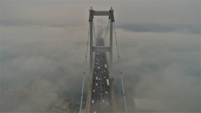 İstanbul’u etkisi altına alan yoğun sis, eşsiz manzaralar oluşturdu. Sisler altında görüntüsüyle hayran bırakan 15 Temmuz Şehitler Köprüsü’nün muhteşem manzarası havadan görüntülendi. Çekilen görüntülerde adeta havada asılı duruyormuş gibi görünen köprü, kartpostallık manzaralar oluşturdu. Araç sürücüleri de köprünün üzerinde seyir ederken eşsiz manzaranın tadını çıkarttı. Kimi zaman sis bulutu köprünün büyük bir kısmını kapatırken görüş mesafeleri azalan sürücüler de hızlarını düşürmek zorunda kaldı. Masmavi denizle birleşen sis bulutu arasından