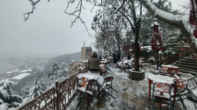 Eşsiz İstanbul manzarası ile turistlerin uğrak yeri olan Pierre Loti tepesinde karla birlikte kartpostallık manzaralar oluştu.