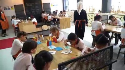 Emine Erdoğan, yaşam becerileri konulu atölye de öğrencilerle merdaneyle hamur açarak, glutensiz kurabiye yaptı. Pişirilen kurabiyelerin tadına bakan Emine Erdoğan, beğenisini 1,5 yaşındaki torununun yaptığı el işaretiyle gösterdi.