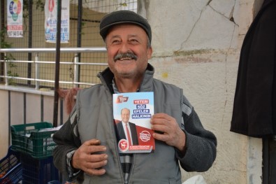 Kuloğlu Mahallesi’nde ürettiği ürünleri Çarşamba Pazarı’nda satmaya gelen bir vatandaş, “ Başkanım size olan sevgimi nasıl söyleyeyim bilmiyorum. Şuramda bağrımda yeriniz, sizi bağrıma basasım geliyor” diyerek Başkan Özakcan’ın seçim broşürünü göğsüne koyarak fotoğraf çektirdi.